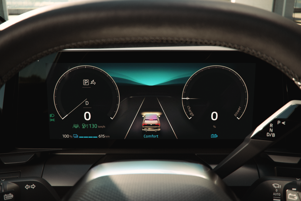 O painel de instrumentos digital tem gráficos novos e varia de aspeto pressionando um botão no volante. É muito fácil de ler, pois não está sobrecarregado de informação. O ecrã tátil central está na vertical e tem aplicações Google embarcadas que funcionam muito bem, sobretudo em coordenação com os comandos por voz. A organização dos menus podia ser mais intuitiva, mas tem um friso de botões físicos em rodapé, para as funções de uso prioritário e climatização. A consola tem vários compartimento com divisórias amovíveis, mas está posicionada junto ao piso. Podia ter um segundo andar, como outros construtores usam.