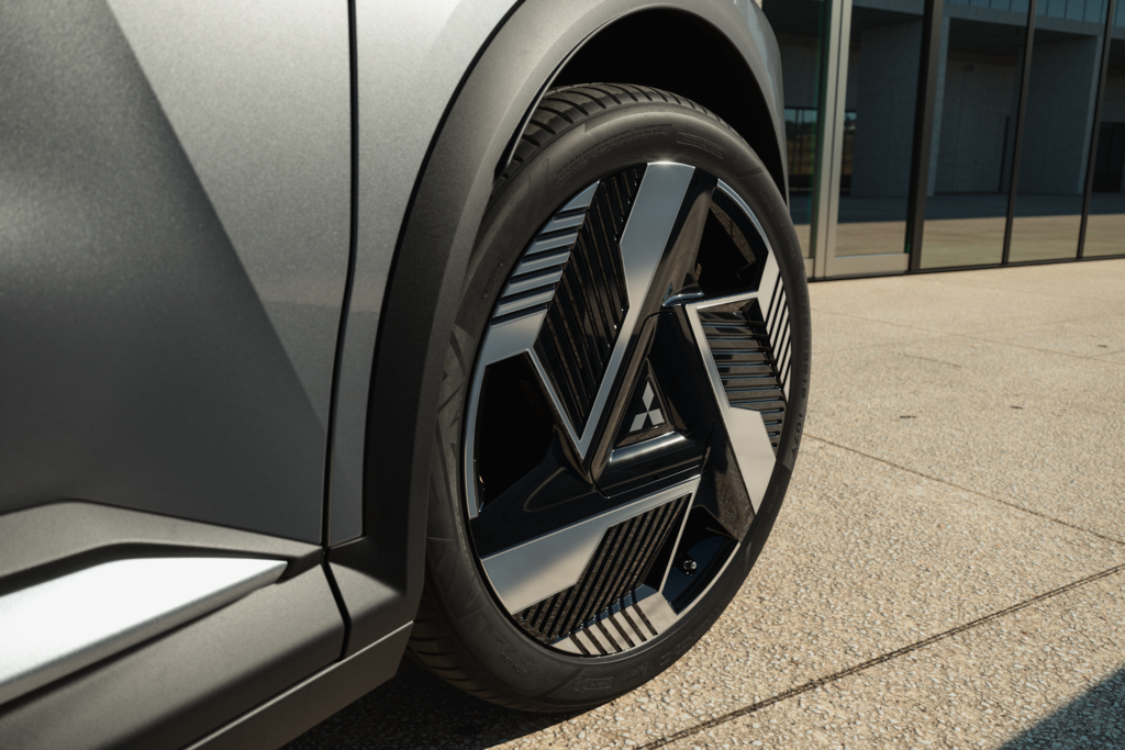 Tudo isto já sabíamos do Renault Scénic E-Tech Electric, modelo gémeo deste Eclipse Cross. As diferenças estão sobretudo ao nível do estilo exterior. Face ao Scenic, o Eclipse Cross apresenta uma frente bastante diferente, numa nova interpretação da Dynamic Shield de todos os modelos da marca. Isso é conseguido através de para-choques com desenho diferente, tanto na frente como atrás, de alguns detalhes de aplicações plásticas e do desenho das jantes. O único nível de equipamento disponível é o Intense. De resto, o Eclipse Cross mantém um perfil que junta as proporções tradicionais de um C-SUV com linhas vanguardistas, que resulta muito bem.