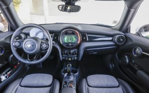 O Mini Cooper SE, (o E é de elétrico) usa a plataforma UKL de todos os outros Mini de três portas, adaptada para levar uma bateria em “T” colocada no túnel central e sob o banco traseiro.