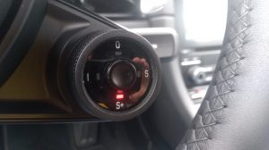 O botão rotativo entre os aros do volante, que muda os modos de condução (0/S/S+/I), continua a ser prático, mas a escolha dos dois modos da suspensão faz-se noutro botão, na consola – ficaria melhor também no volante. Há alturas em que dava jeito mudar rapidamente para Normal, quando a estrada piora.