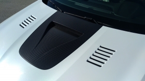 Depois há o capót em fibra de vidro e de carbono, com uma entada “NACA” a meio, para-choques com mais entradas de ar para radiadores e travões e um extrator atrás, que faz mesmo “downforce.”