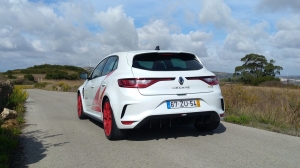 A suspensão mantém sempre uma atitude muito estável e controlada. A pura verdade é que, este Mégane RS Trophy R não precisa que se lhe provoque o eixo traseiro para obrigar o dianteiro a manter a linha certa. A aderência e a tração são simplesmente demasiado altas. Basta guiar limpo, nem é preciso “inventar”, para se chegar a um nível de condução muito impressionante para um carro de tração apenas às rodas da frente.