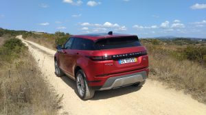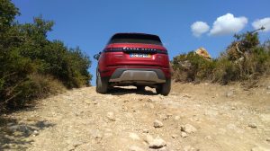 Com 212 mm de altura ao solo, o Evoque passa por cima de calhaus de bom porte, sem lhes tocar. Os ângulos de ataque e saída são de 25 graus e 30,6 graus, melhor o segundo que o primeiro, como é lógico e a passagem a vau subiu de 500 para 600 mm, para quem se quiser aventurar.