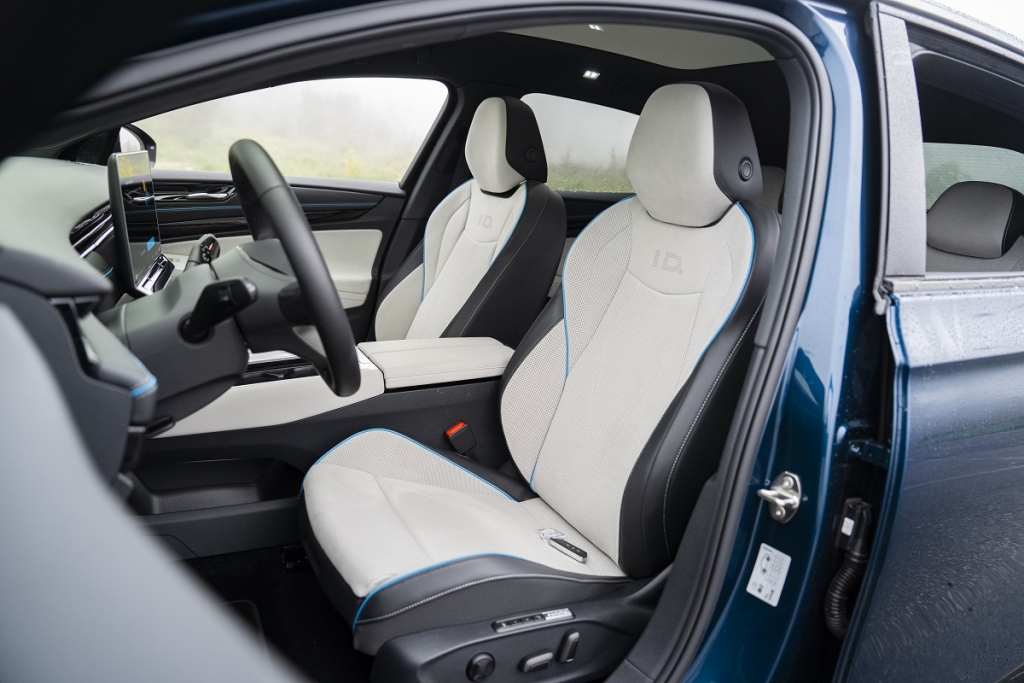 Claro que, quando se chega a este ponto, a massa começa a notar-se mais, o ID.7 já faz movimentos mais amplos nos encadeados de curvas e o ESC recorda-me que esta nem é a versão desportiva do ID.7. Essa vai chegar mais tarde, chama-se GTX, tem 340 cv, dois motores e tração às quatro rodas. Duvido que seja tão divertida como esta…