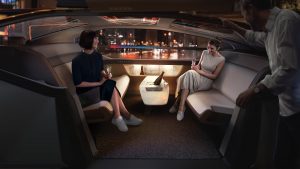 Por ser um veículo 100% autónomo, o utilizador poderá escolher a configuração do habitáculo que prefere, quando reserva a sua utilização.